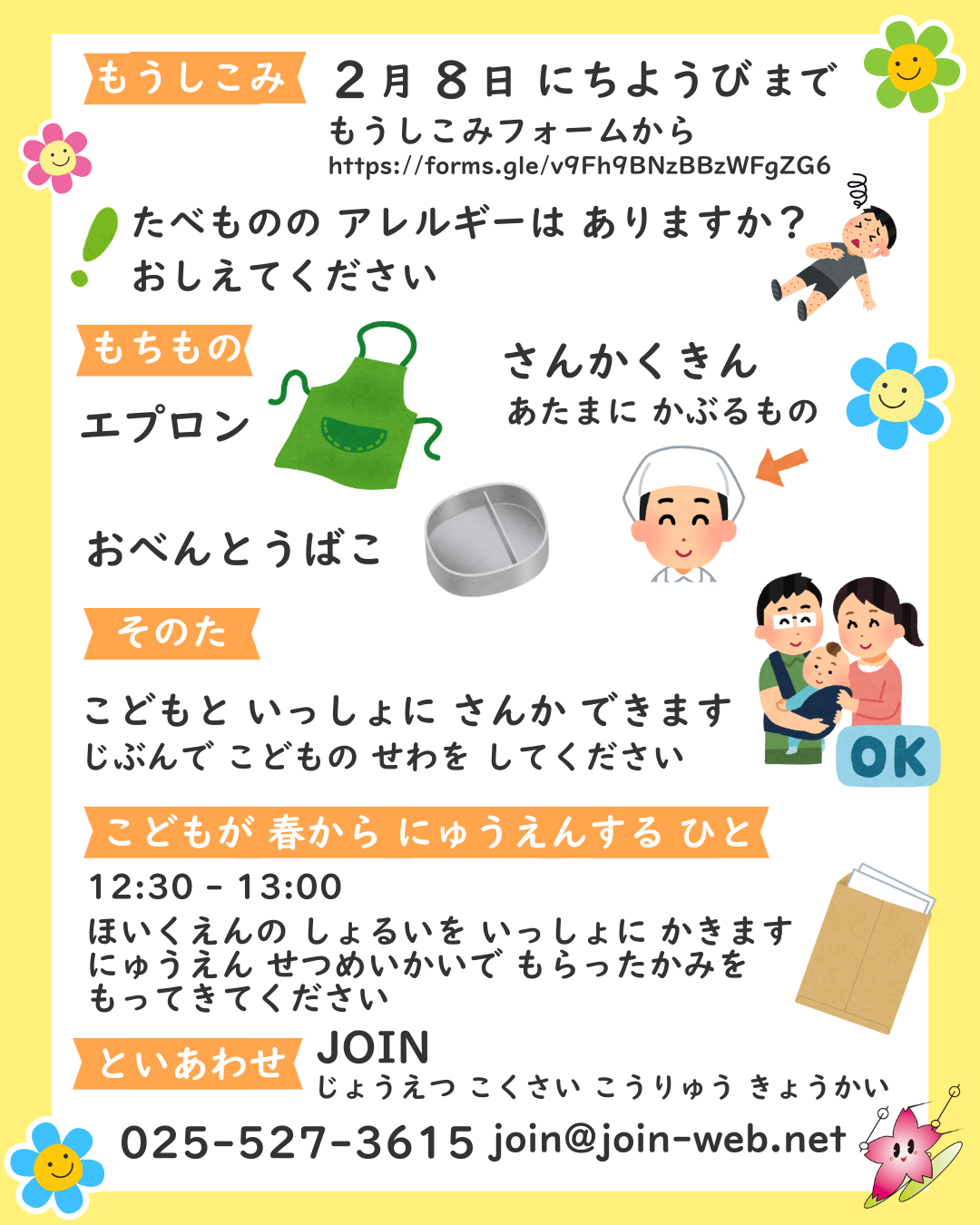 「こどものおべんとうをつくろう」にさんかしませんか?